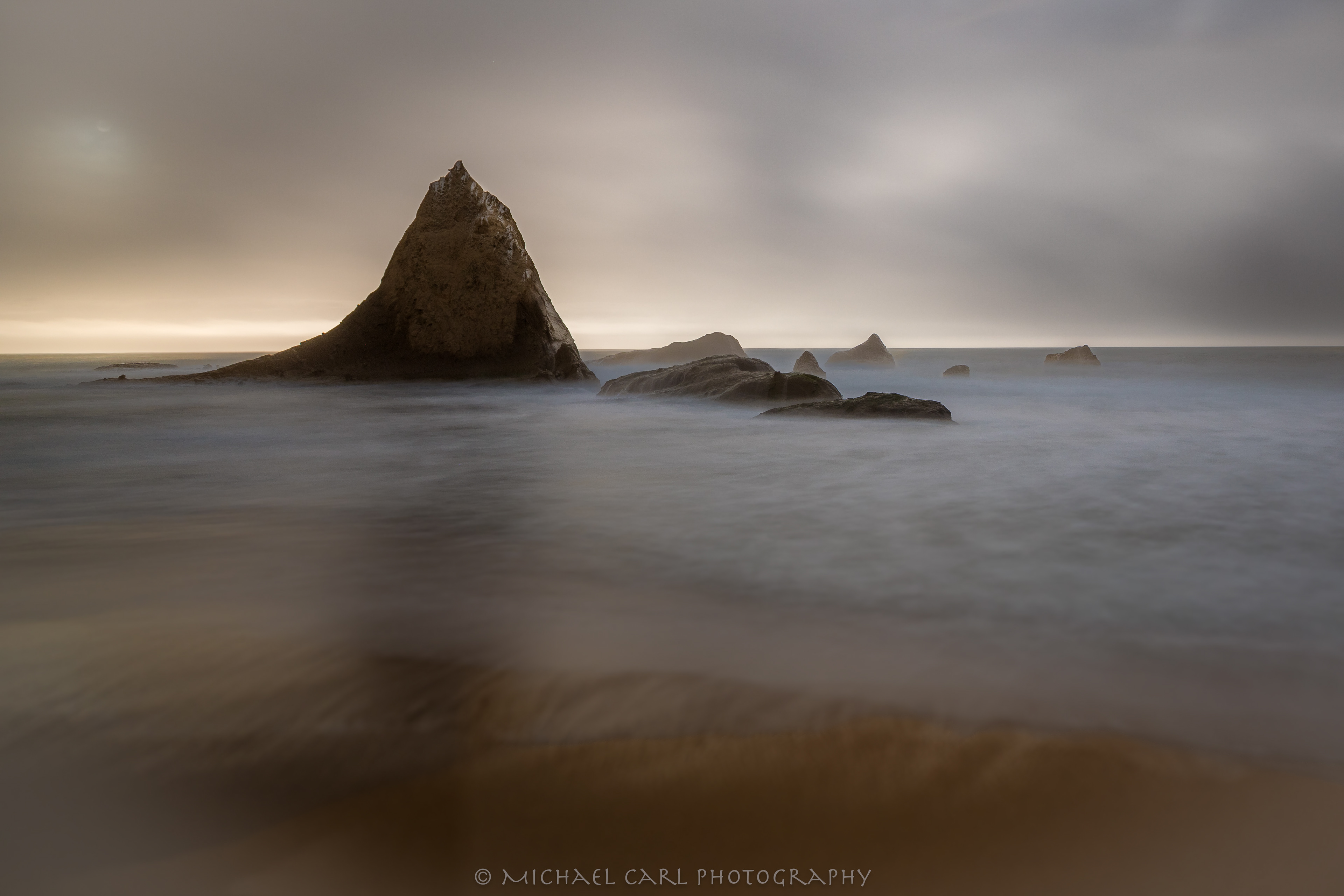Oregon Coast seascape photograph taken on Bandon Beach at sunset