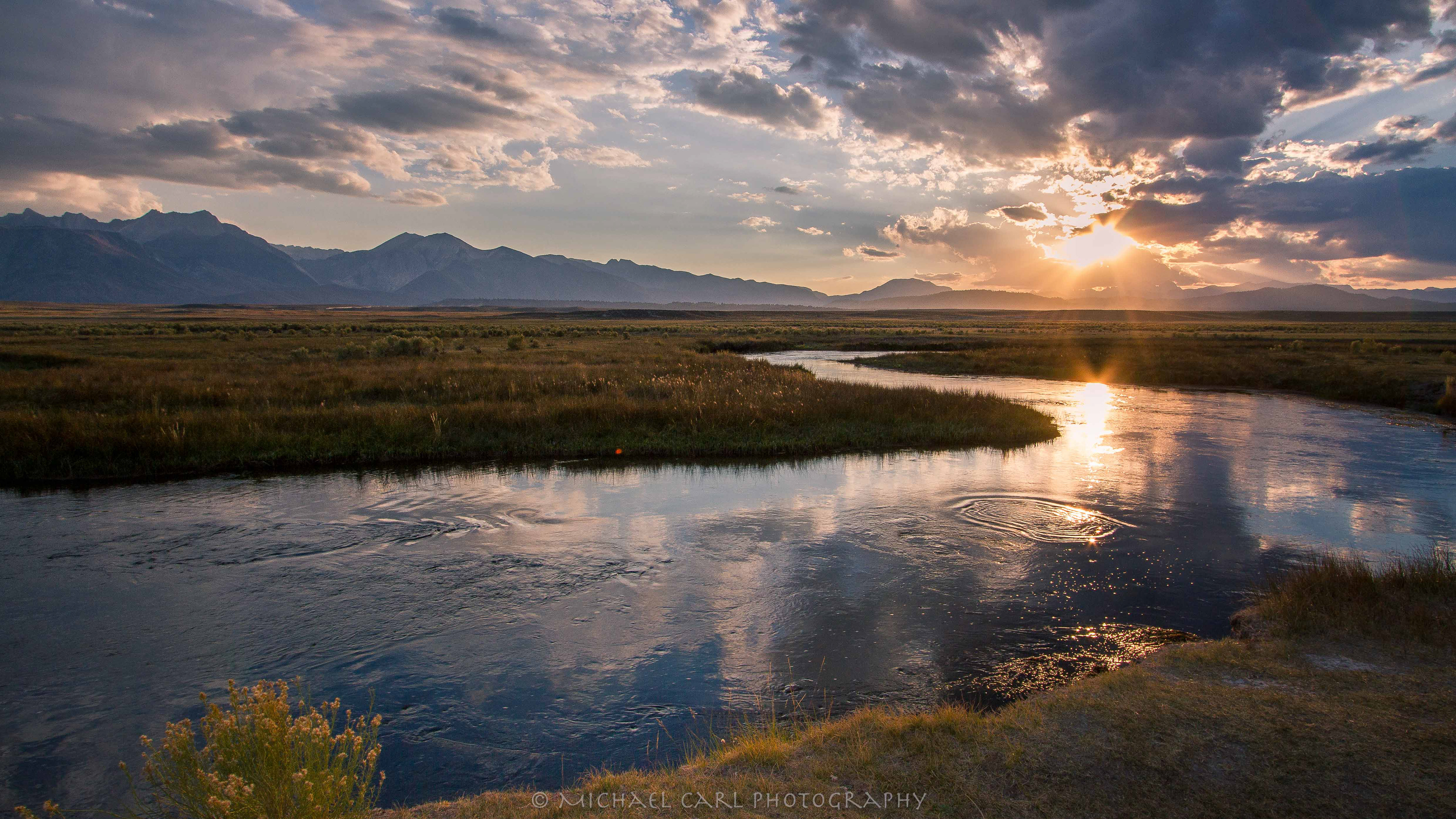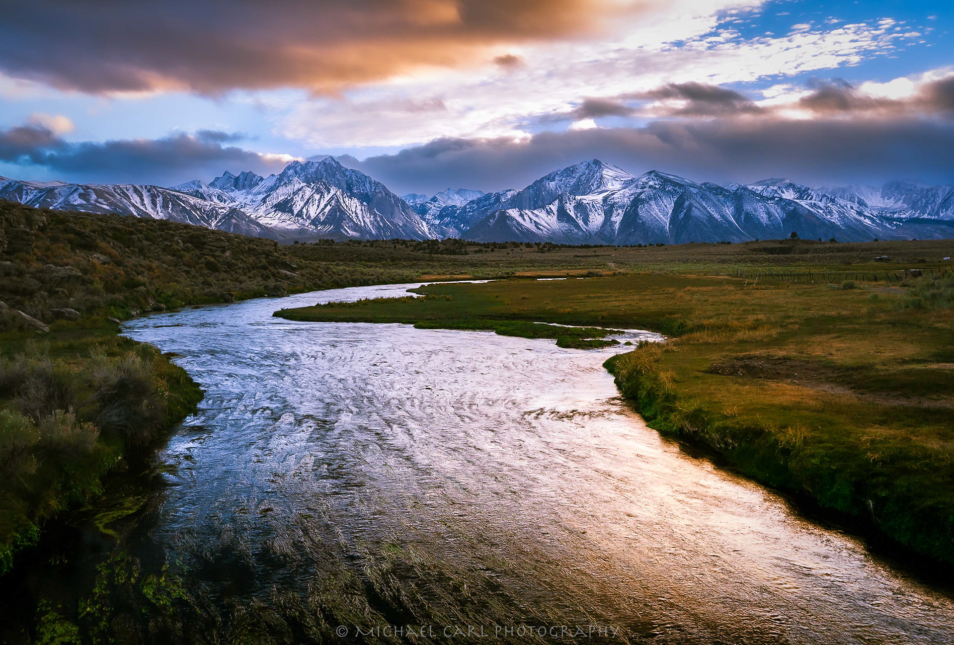 Sierra Nevada Mountains photograph of sunset through storm clouds
